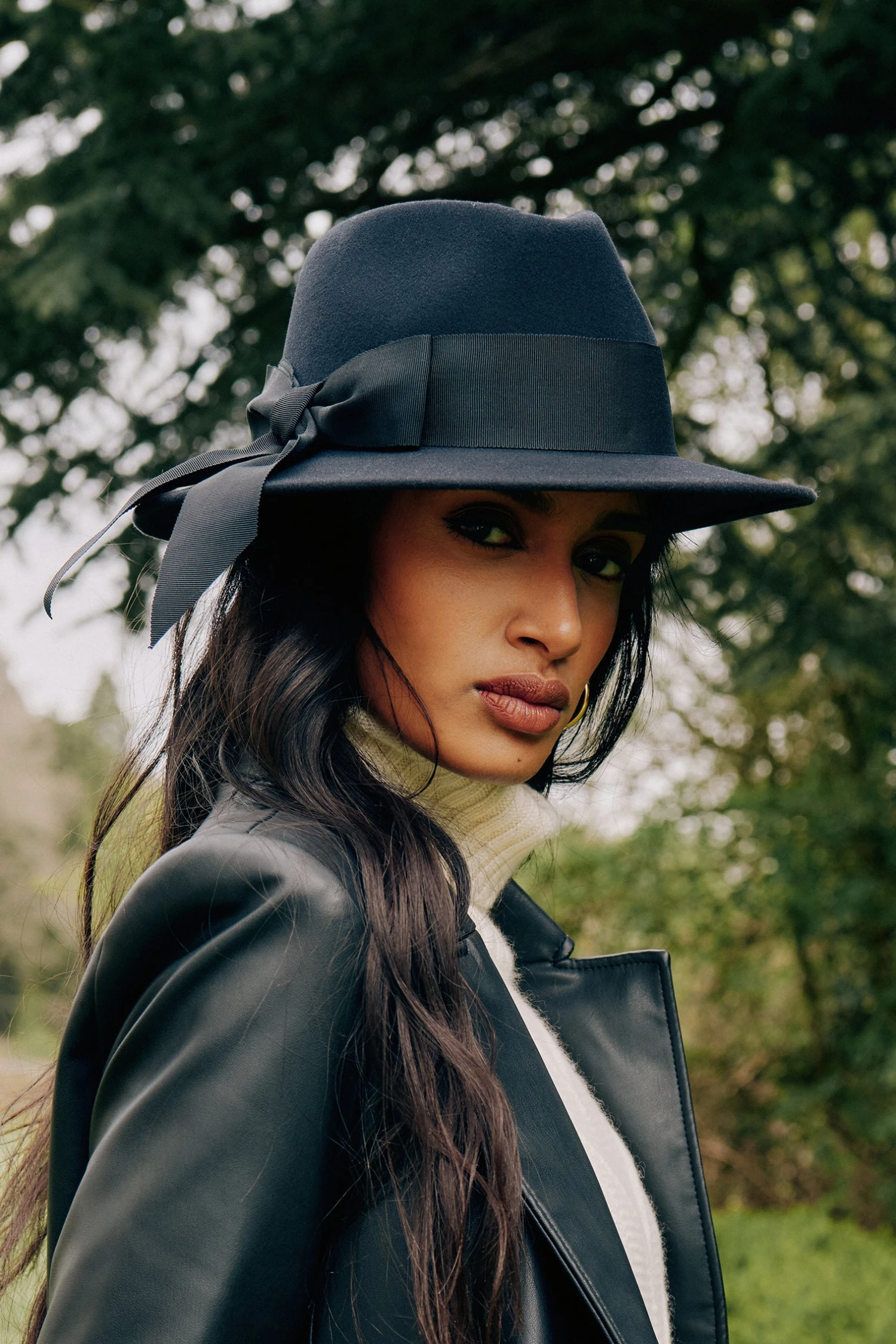 An oversized Petersham band & bow combine to bring an understated poise to this distinctive trilby silhouette.