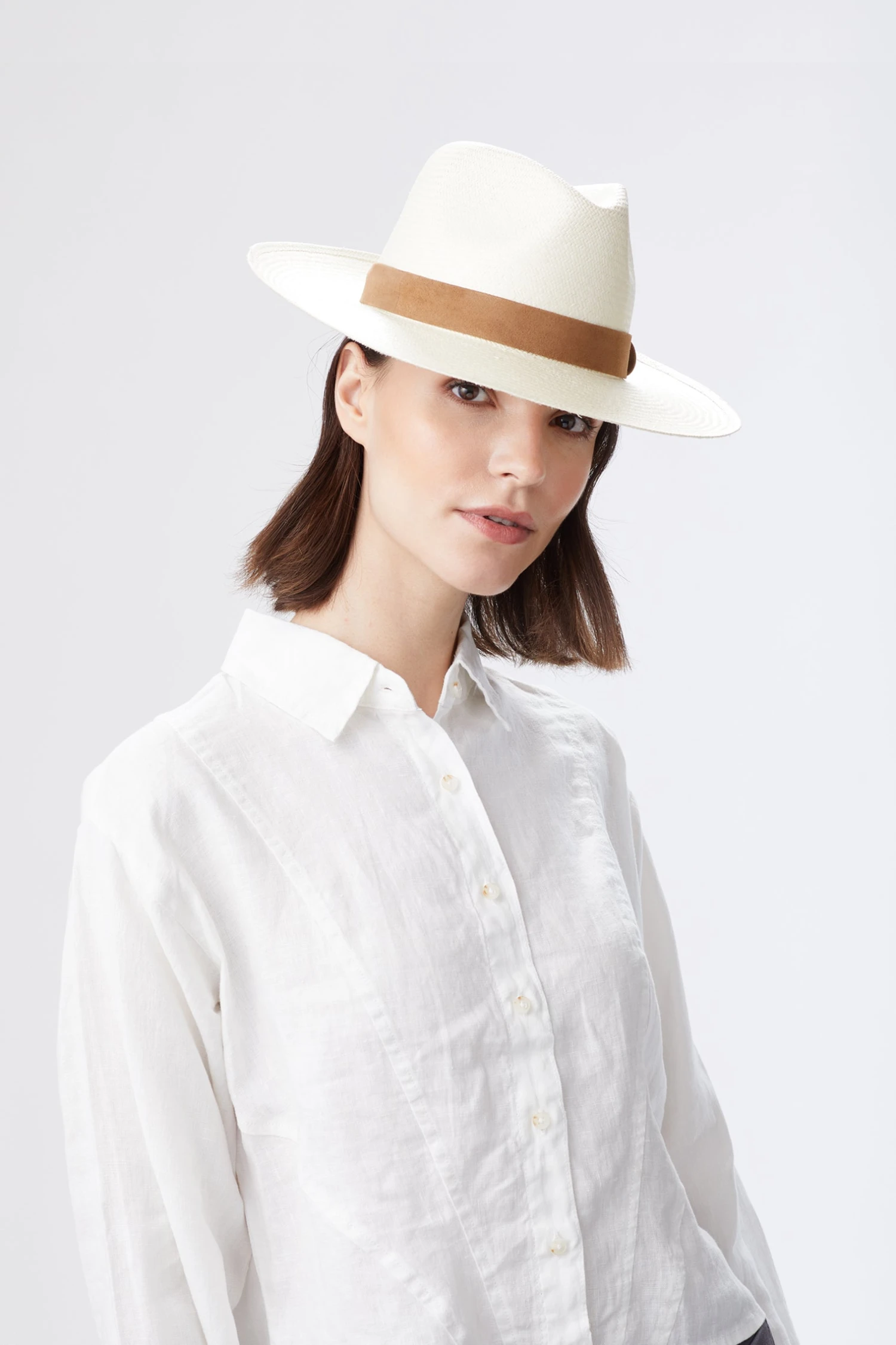 Woven from toquilla straw by local artisans in Ecuador, the birthplace of the Panama this elegant and classic summer piece is accented with a suede band which gives this traditional style a dashing twist.