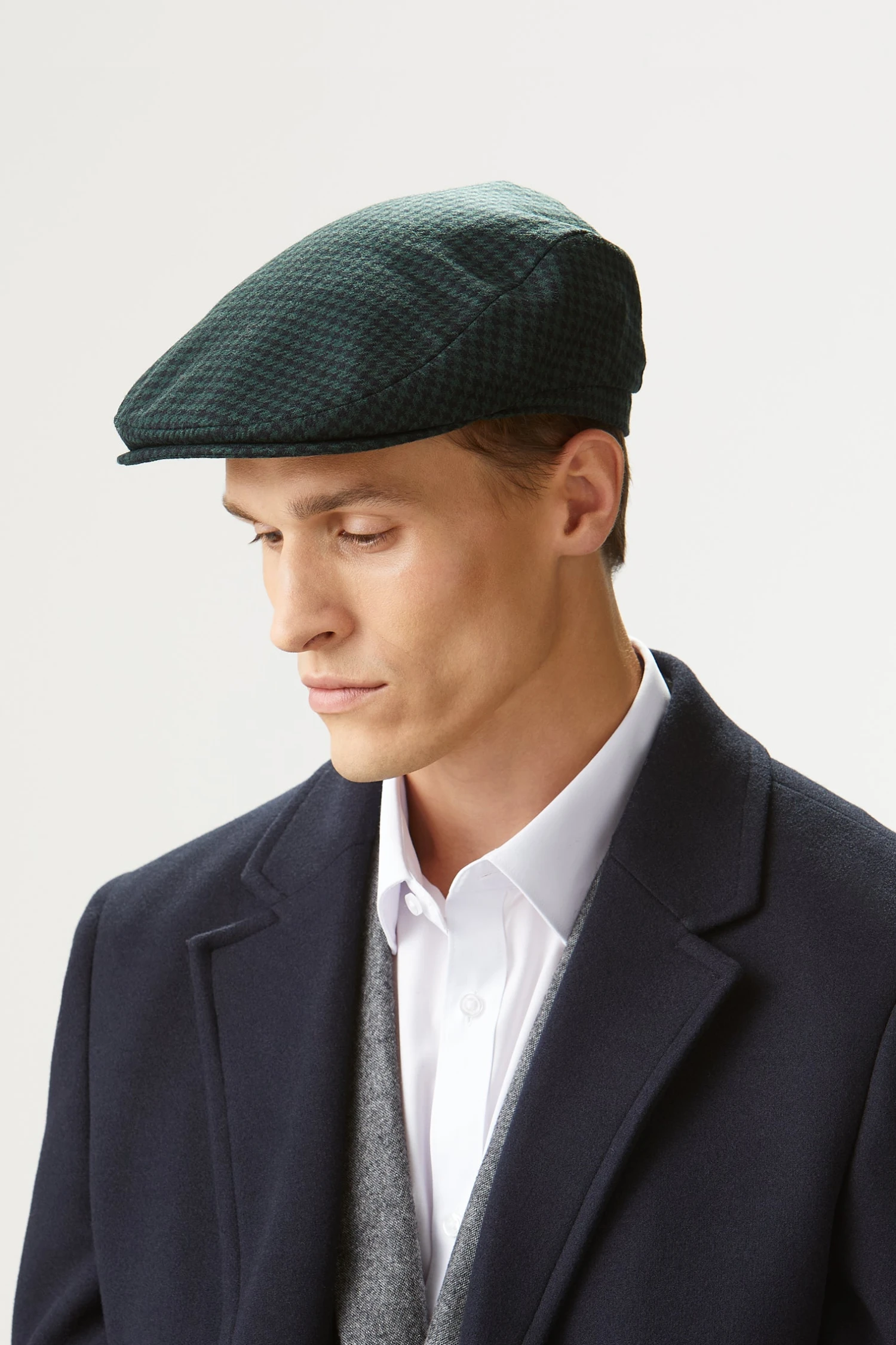 Our bestselling flat cap is perfect for the autumn and winter seasons. This chic but understated cap has been re-imagined in a smart black and dark green city check made from 100% wool by Italy’s oldest cloth manufacturer. Wear it in the city for a London vibe or in the countryside for winter walks.