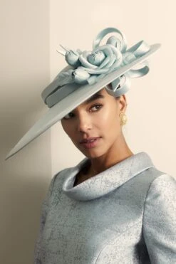 “A classic slice hat that suits all face shapes, this flattering shape is perfect for the discerning mother-of-the-bride or race-goer.” Awon Golding, Head Millinery Designer.