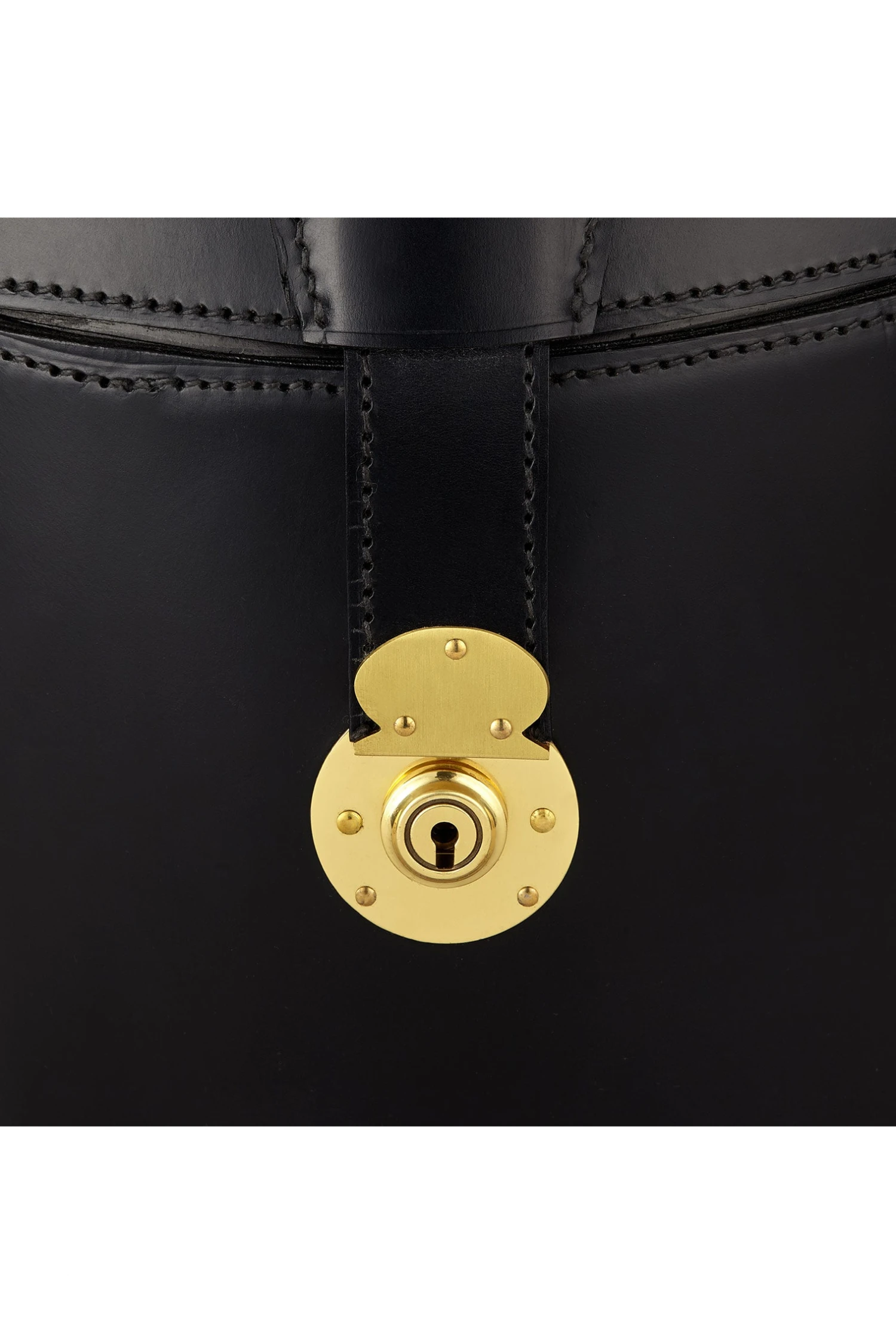 Distinguished by exceptional craftsmanship, the tapered design is handcrafted in England from luxurious bridle leather and features a plush silk velvet lining, carrying handle, and working brass lock.