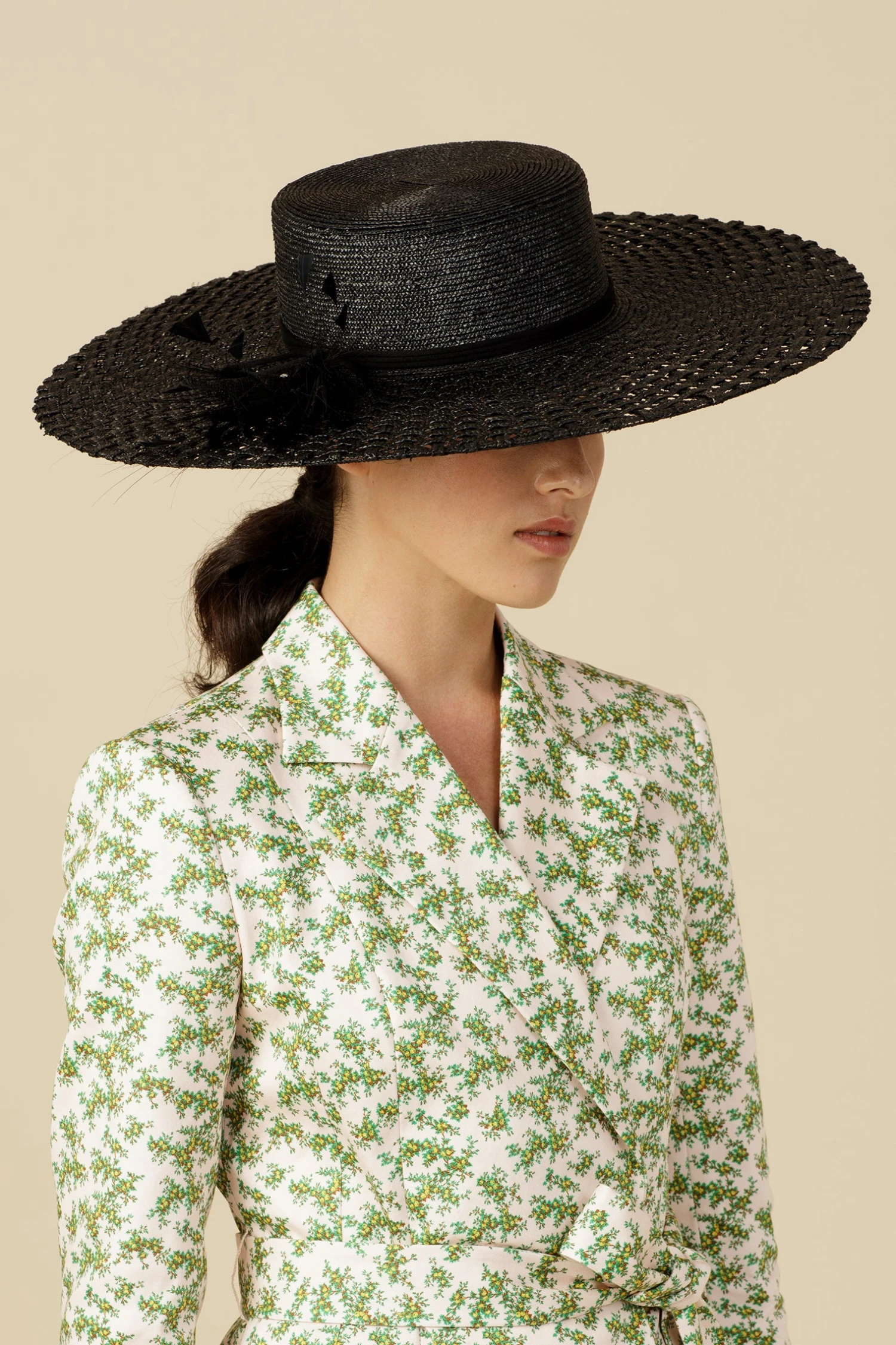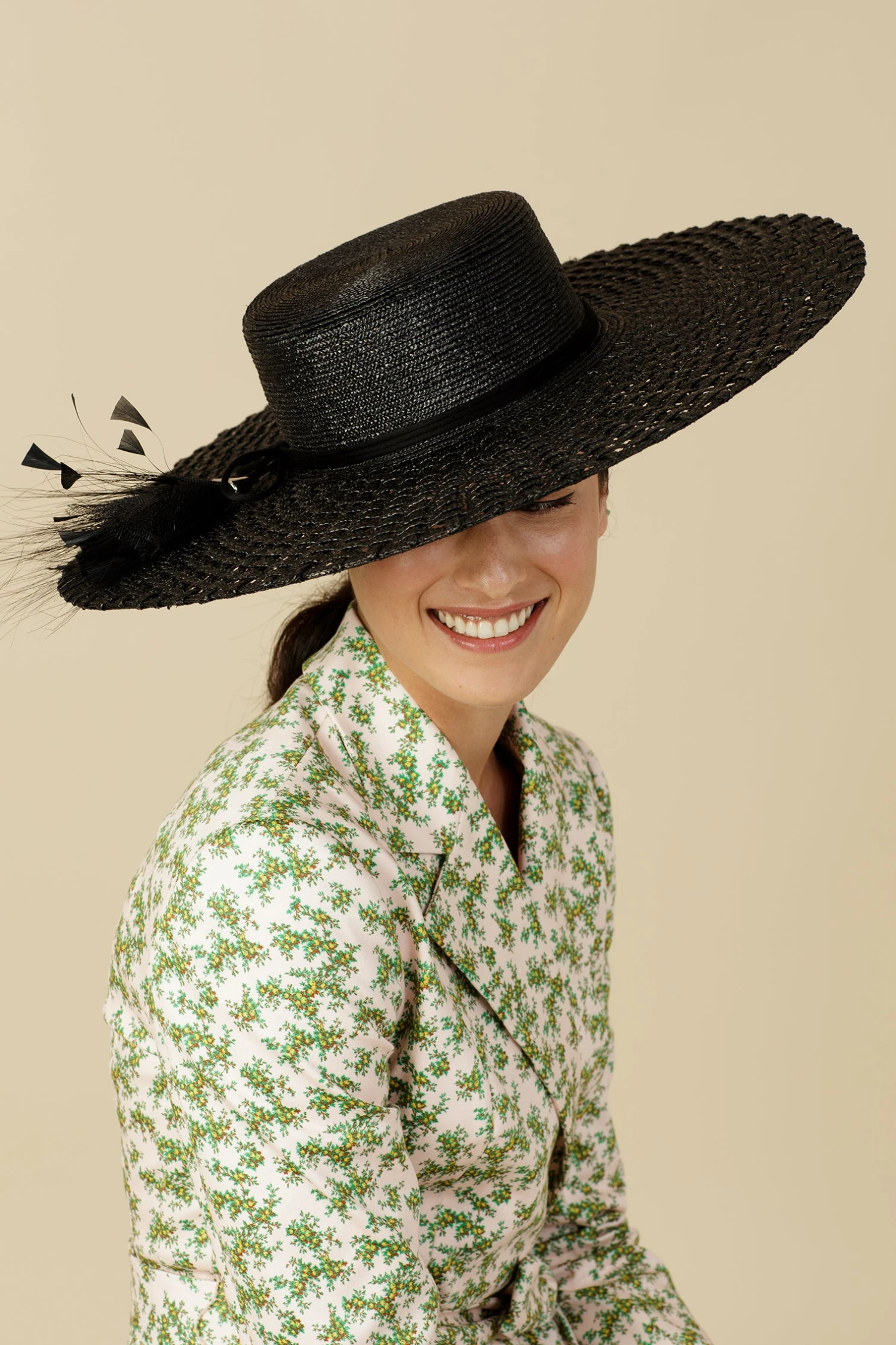 The Mayer boater is crafted with a woven straw braid brim and features a satin cord and feather trim. This piece is easy to wear and a flattering classic hat style.