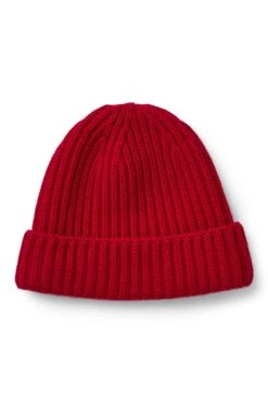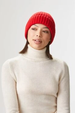 This red cashmere beanie will add a vibrant edge to your winter wardrobe.Â