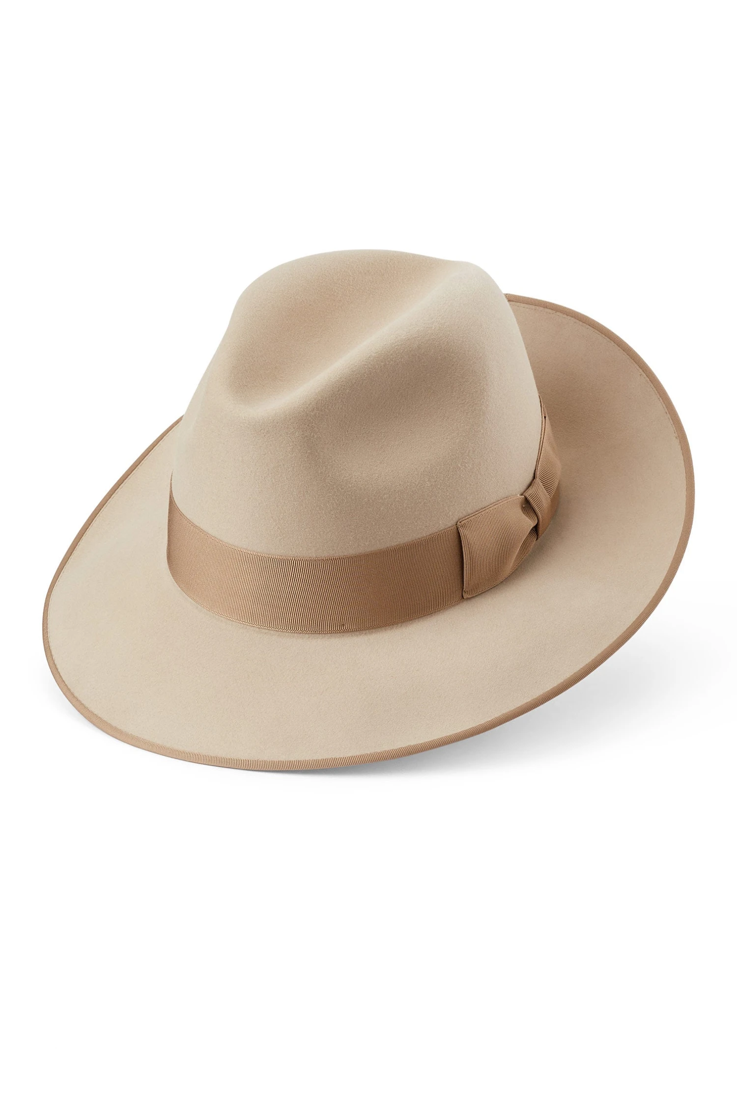 The St James’s fedora has a delightfully dapper silhouette that will add a touch of panache to your autumn and winter outfits, whatever the occasion. This luxuriously soft, lightweight hat is crafted from the finest beaver and mink fur. Available in ‘golden’ beige, a delicate and warm autumn shade.
