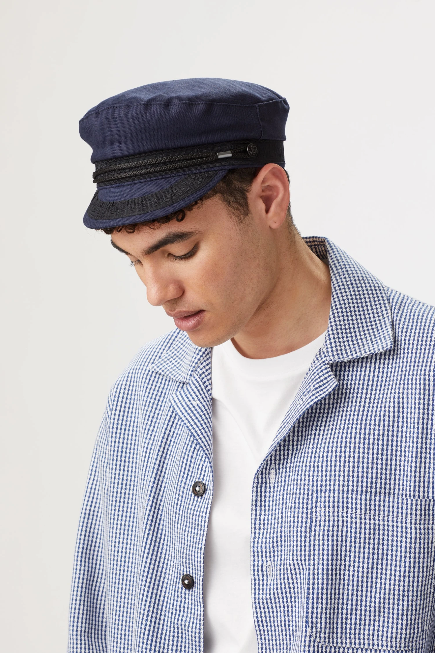 This classic and luxurious summer skipper cap is crafted from 100% cotton. The authentic black braid detailing and embellishments make this cap the finest in maritime styling.