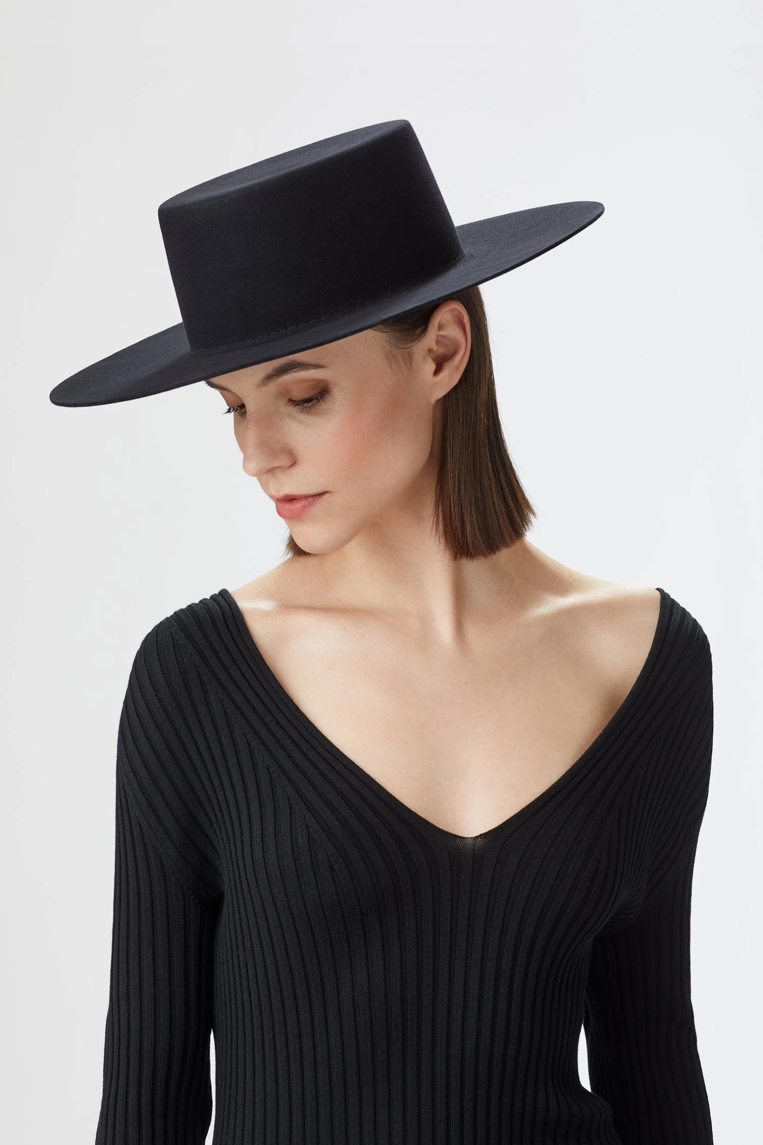 A beautifully elegant women’s black fedora, inspired by Tracy Di Vicenzo’s hat in the movie On Her Majesty’s Secret Service.